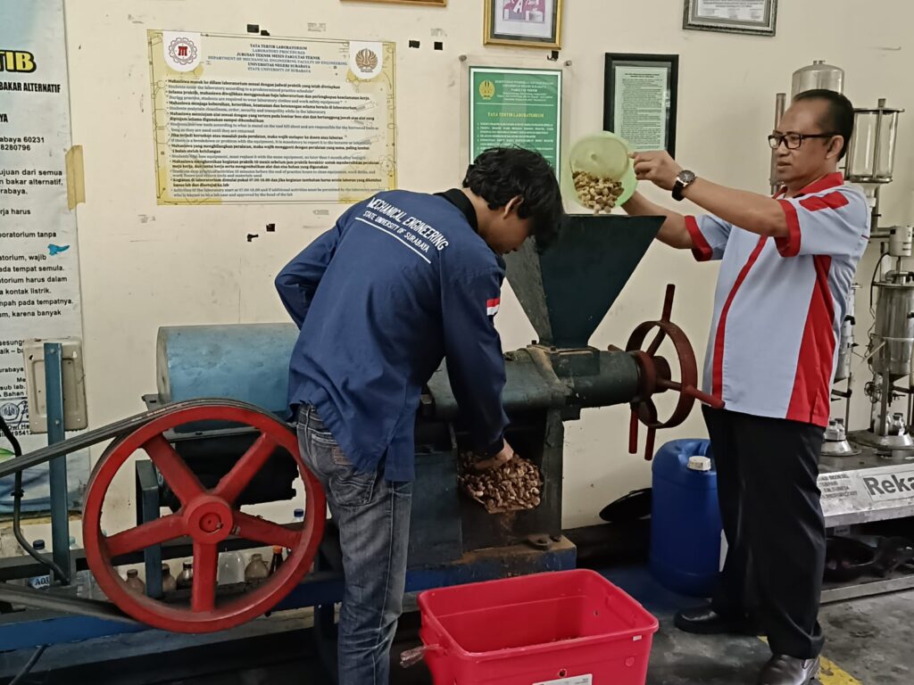 Proses pembuatan biofuel (biodiesel) selama ini masih sebatas skala laboratorium. Dimulai dari mengepres biji-bijian dengan menggunakan mesin pres dan dilanjutkan memproduksi biodiesel melaui esterifikasi atau tranesterfikasi. Selanjutnya dilakukan pengujian karakteristik bahan-bahan, lalu dilakukan eksperimen pada mesin motor diesel. Sedangkan untuk produksi bioetanol melalui proses sakarifikasi, permentasi, dan distilasi serta aplikasinya pada motor bensin dilaksanakan di laboratorium bahan bakar dan laboratorium pengujian Teknik mesin FT Unesa. Alhamdulillah, mulai2023 saya diamanahi untuk mengelola laboratorium bahan bakar dan pengujian performa mesin sehingga hal ini sangat membantu kelancaran penelitian bahan bakar tersebut.